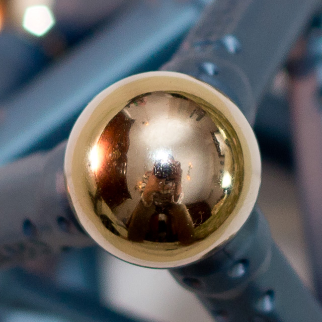 And finally here's a crop from the metal ball in the above shot acting as a 360 degree mirror, it will show you the directions from which the lights were falling, the light you see from the camera is the pop-up flash trigerring the speedlites, it is very weak and does not contribute to the final exposure.